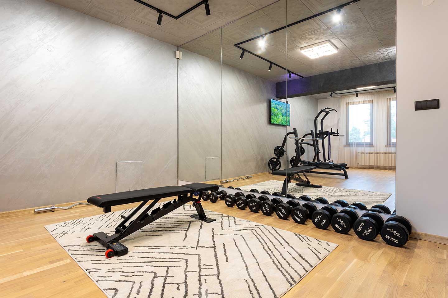 Влезте във форма и поддържайте активен начин на живот във фитнес залата на Villa 1331. Създадена за удобство и ефективност, залата предлага целогодишен достъп до 43 кв.м. пространство, оборудвано с чисто нови професионални уреди от Technogym и дъмбели Activegym. Независимо дали искате да се занимавате с кардио, силови тренировки или разтягане, нашата фитнес зала предоставя всичко необходимо за разнообразни упражнения.