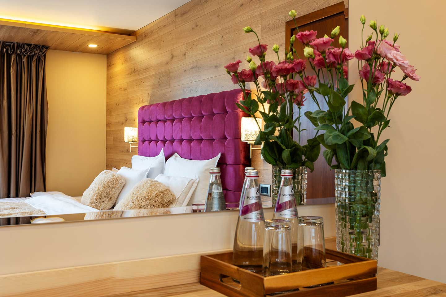 Голямото огледало и вграденият гардероб добавят функционалност и стил, докато южното изложение гарантира богат на светлина ден с изгледи към басейна и околната природа. На разположение са също работно пространство, етажерка, кафемашина Nespresso и безплатни напитки.