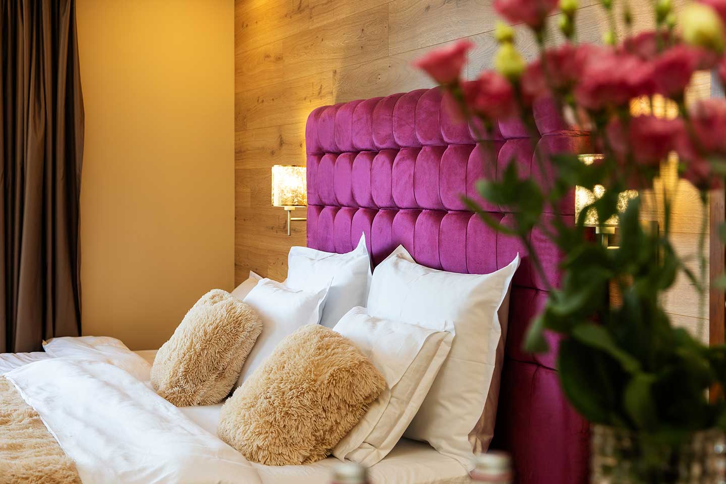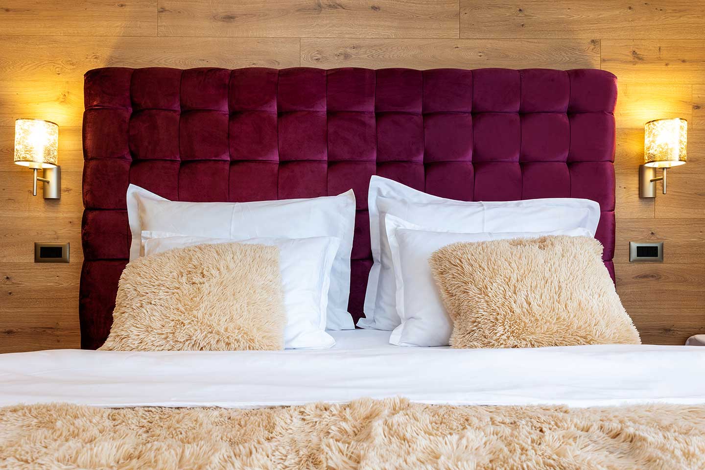 Вторият етаж на Villa 1331 крие истински бижу - спалня 2, приветлива и стилна, която предлага уникална комбинация от съвременен комфорт и елегантен чар. Обзаведена с изтънчен вкус, стаята впечатлява с наситените малинови тонове на дамаската, които ефектно контрастират с нежната светлина, а натуралният паркет допълва усещането за топлина и уют.